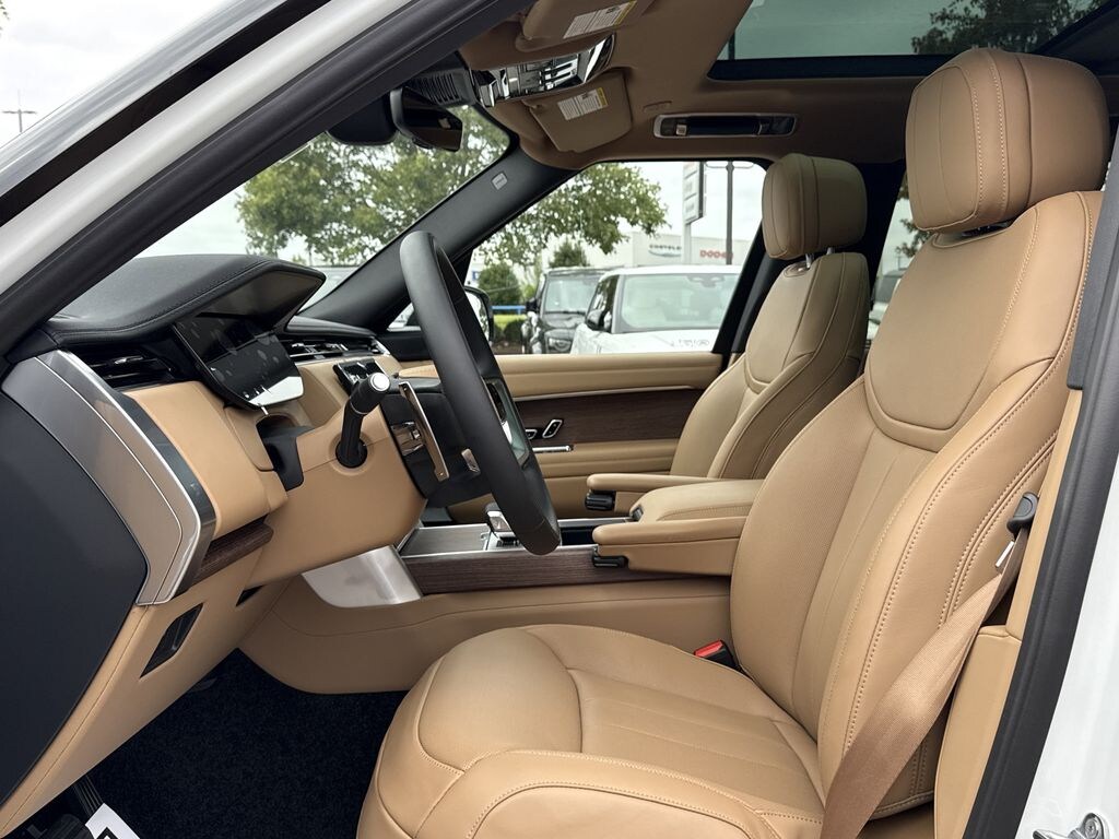 15 Speakers, 20-Way Heated/Ventilated Electric Fr Bucket Seats, 3rd row seats: split-bench, 4-Wheel Disc Brakes, ABS brakes, Adaptive suspension, Advanced Tow Assist, Alloy wheels, AM/FM radio: SiriusXM w/360L, Anti-whiplash front head restraints, Apple CarPlay & Android Auto, Auto tilt-away steering wheel, Auto-dimming door mirrors, Auto-dimming Rear-View mirror, Auto-leveling suspension, Automatic temperature control, Black Brake Calipers, Brake assist, Bumpers: body-color, Cold Climate Pack, Dual front impact airbags, Dual front side impact airbags, Electronic Stability Control, Exterior Parking Camera Rear, Four wheel independent suspension, Front anti-roll bar, Front Bucket Seats, Front dual zone A/C, Front fog lights, Fully automatic headlights, Heated door mirrors, Heated front seats, Heated rear seats, Heated Washer Jets, Heated Windscreen, Illuminated entry, Memory seat, Meridian 3D Surround Sound System, Meridian Sound System, Navigation system: Pivi Pro Connected Navigation, Occupant sensing airbag, Overhead airbag, Perforated Windsor Leather Seat Trim, Power adjustable front head restraints, Power door mirrors, Power driver seat, Power moonroof, Power passenger seat, Premium audio system: Meridian, Radio: SiriusXM Satellite & HD Audio System, Rear air conditioning, Rear anti-roll bar, Rear dual zone A/C, Rear fog lights, Remote keyless entry, Speed-sensing steering, Spoiler, Steering wheel memory, Steering wheel mounted A/C controls, Steering wheel mounted audio controls, Tow Hitch Receiver, Towing Pack, Traction control, Turn signal indicator mirrors, Ventilated front seats, Ventilated rear seats, Wheel Protection Pack, Wheels: 23" 10 Split-Spoke Gloss Black. White Pearl 2025 Land Rover Range Rover SE LWB AWD ZF 8-Speed Automatic 4.4L V8 Twin Turbocharged