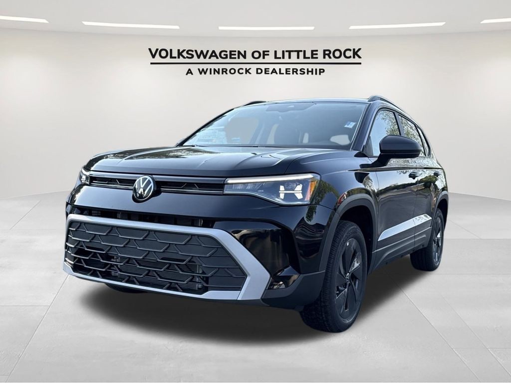 Black 2025 Volkswagen Taos 1.5T S FWD 8-Speed Automatic with Tiptronic 1.5L I4 Turbocharged DOHC 16V LEV3-SULEV30 174hp