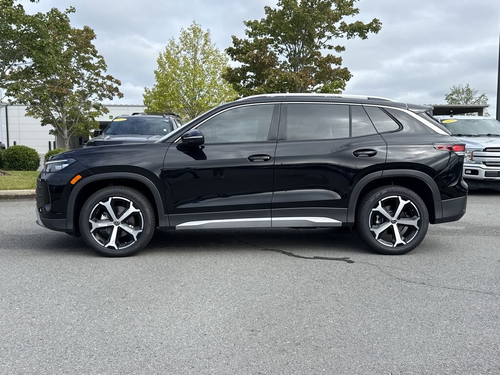 4-Wheel Disc Brakes, 4-Wheel Independent Suspension, 7 Speakers, ABS brakes, Alloy wheels, AM/FM radio: SiriusXM with 360L, Auto-Dimming Rearview Mirror w/HomeLink Connect, Automatic temperature control, Brake assist, Dual front impact airbags, Dual front side impact airbags, Electronic Stability Control, Exterior Parking Camera Rear, Four wheel independent suspension, Front anti-roll bar, Front Bucket Seats, Front dual zone A/C, Fully automatic headlights, Heated door mirrors, Heated Front Seats, Heated front seats, Illuminated entry, Knee airbag, Occupant sensing airbag, Overhead airbag, Perforated V-Tex Leatherette Seating Surfaces, Power door mirrors, Power driver seat, Power Liftgate, Radio: MIB4 Composition Media Touchscreen AM/FM, Rear anti-roll bar, Rear side impact airbag, Remote keyless entry, Speed-sensing steering, Steering wheel mounted audio controls, Traction control, Turn signal indicator mirrors, VW Care, Wheels: 19" 2-Tone Machined Alloy. Deep Black Pearl 2025 Volkswagen Tiguan 2.0T SE FWD 8-Speed Automatic 2.0L TSI DOHC
